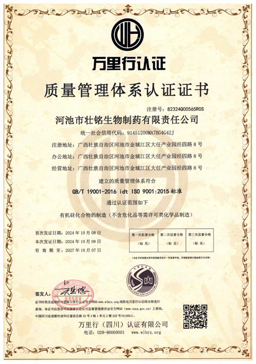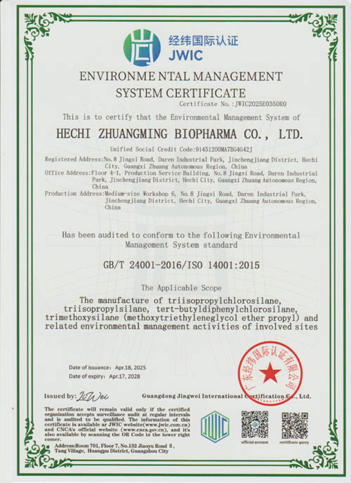 (formerly Zhuangming Technology) is a high-tech enterprise dedicated to the R&D, production and sales of high-end organosilicon products. Its R&D base is located in Pudong, Shanghai, and its pilot and production bases are situated in Daren Industrial Park, Hechi City, Guangxi Zhuang Autonomous Region. The company focuses on the development and production of various new organosilicon monomers and high-end organosilicon polymers. Its product categories include alkylsilanes, halosilanes, aminosilanes, hydrosilanes, alkoxysilanes, unsaturated silanes; special silicone oils, silicone resins, silicone rubbers, coupling agents, crosslinking agents, photoresists, etc. Its business covers multiple fields such as biomedicine, high-end manufacturing, new energy, electronic consumption, photoresist, and OLED.